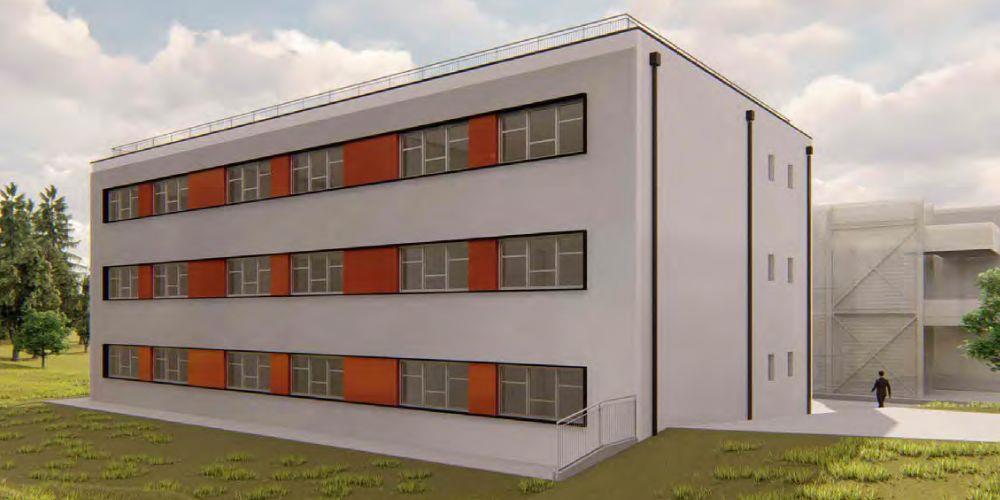 Il progetto interessa un’area già urbanizzata, all’interno di un lotto destinato ad attrezzature scolastiche e nel quale già esiste l’istituto tecnico. Il programma funzionale prevede quindi la realizzazione di un nuovo gruppo aule destinato ad accogliere le attività didattiche frontali dell’istituto.