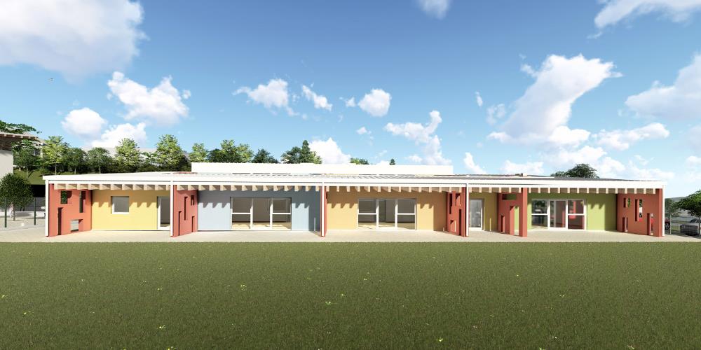 un altro stralcio progettuale, connettendo funzionalmente le nuove strutture alla scuola elementare. L’area, morfologicamente pianeggiante a seguito di modifiche antropiche, è sita a sud ovest della scuola primaria e dell’adiacente palestra comunale, separata da queste da un dislivello di circa nove metri. La prossimità con la scuola e la palestra esistenti, nonché con gli impianti sportivi (circolo tennis a ovest e nuovo campo di calcio a est), la panoramicità e l’esposizione conferiscono all’area le caratteristiche necessarie per sviluppare il progetto.